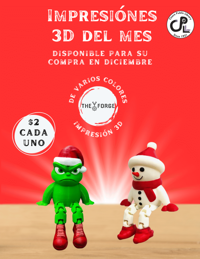 The Forge is the Cicero Public Library’s makerspace, a place where you can explore your creativity and bring your ideas to life. Equipped with a variety of tools and equipment, we offer a hands-on learning environment for individuals ages 12 and up. Whether you’re a seasoned maker or just starting out, our makerspace provides the resources and support you need to create amazing projects.