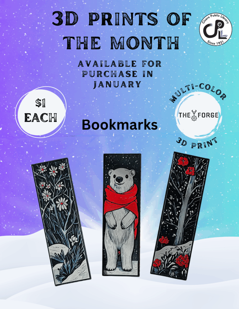The Forge is the Cicero Public Library’s makerspace, a place where you can explore your creativity and bring your ideas to life. Equipped with a variety of tools and equipment, we offer a hands-on learning environment for individuals ages 12 and up. Whether you’re a seasoned maker or just starting out, our makerspace provides the resources and support you need to create amazing projects.