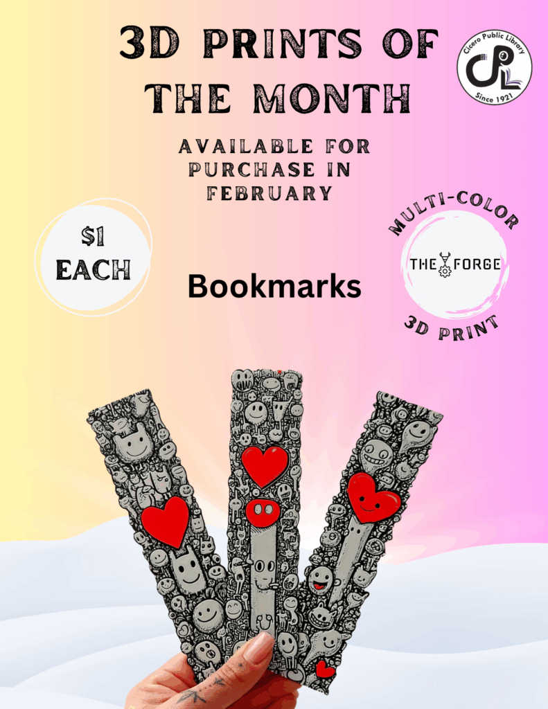 The Forge is the Cicero Public Library’s makerspace, a place where you can explore your creativity and bring your ideas to life. Equipped with a variety of tools and equipment, we offer a hands-on learning environment for individuals ages 12 and up. Whether you’re a seasoned maker or just starting out, our makerspace provides the resources and support you need to create amazing projects.