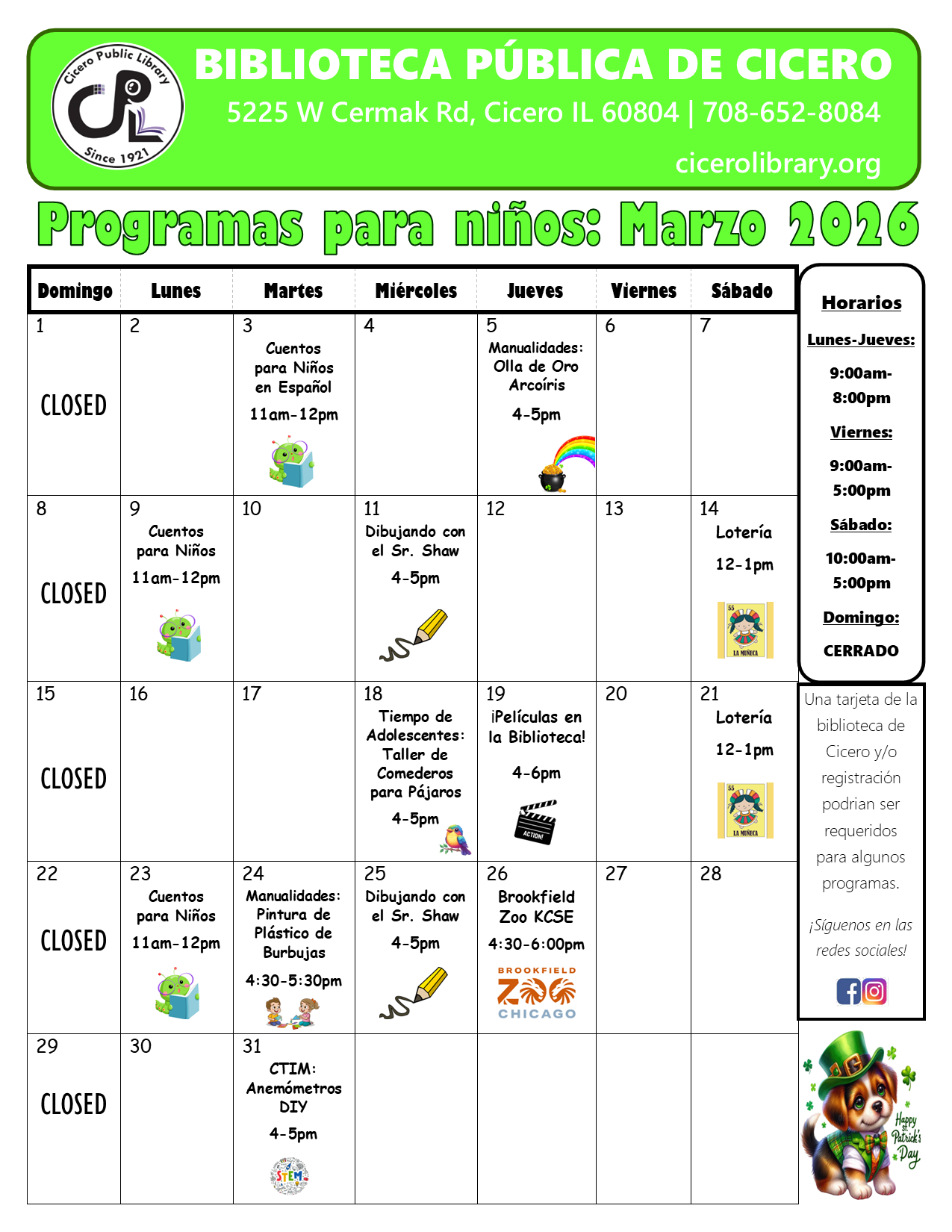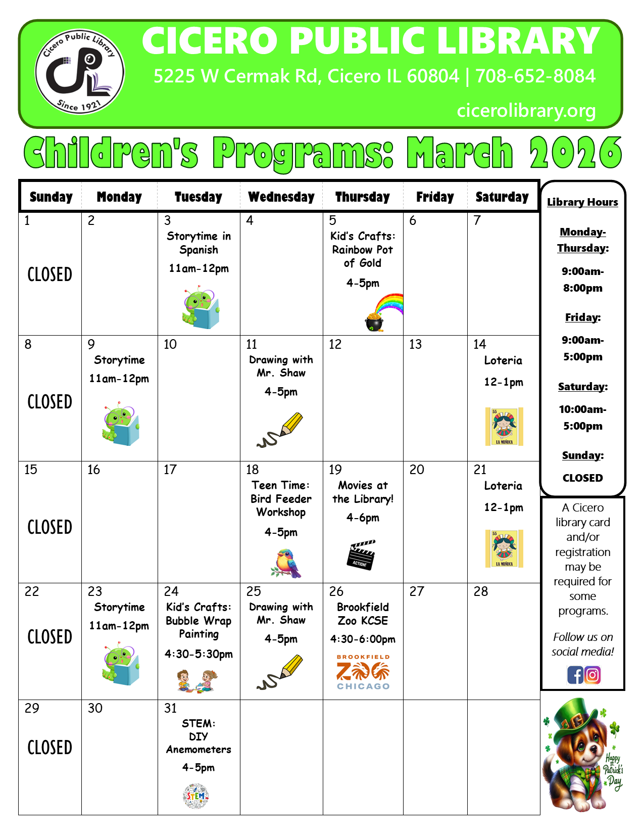 The Cicero Public Library Youth Services Department is happily hosting programming all year long!