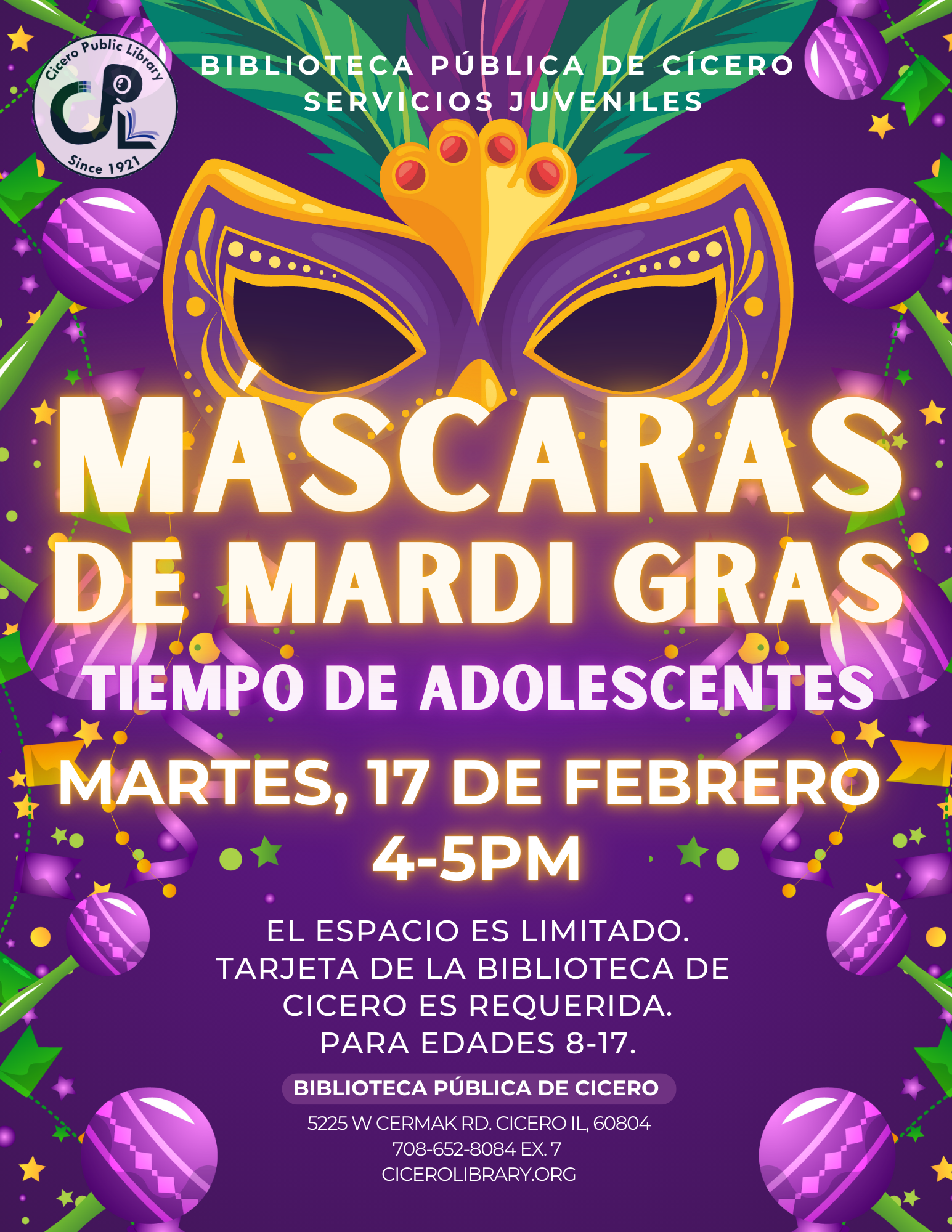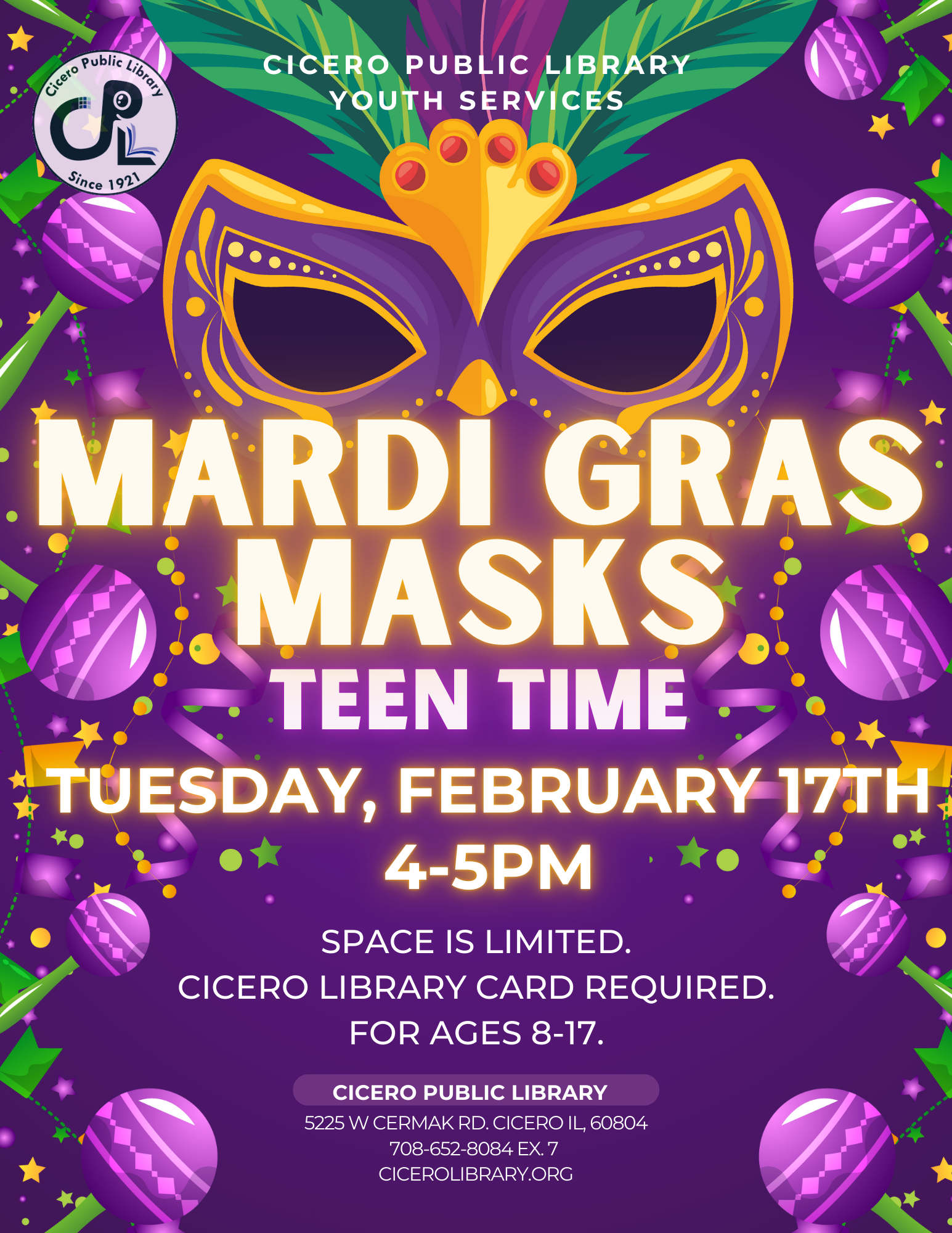 For more information, please call us at the Youth Services Dept. at 708-652-8084 ex. 7.