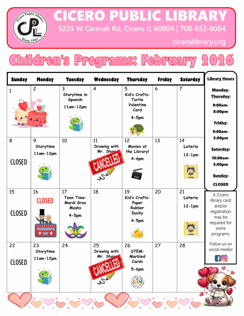 The Cicero Public Library Youth Services Department is happily hosting programming all year long!